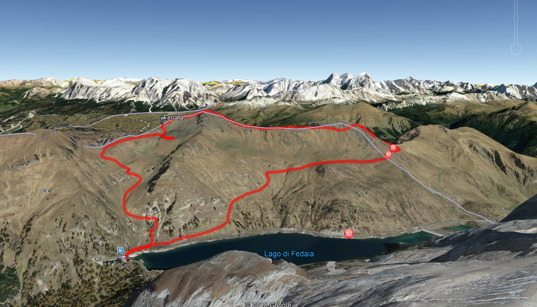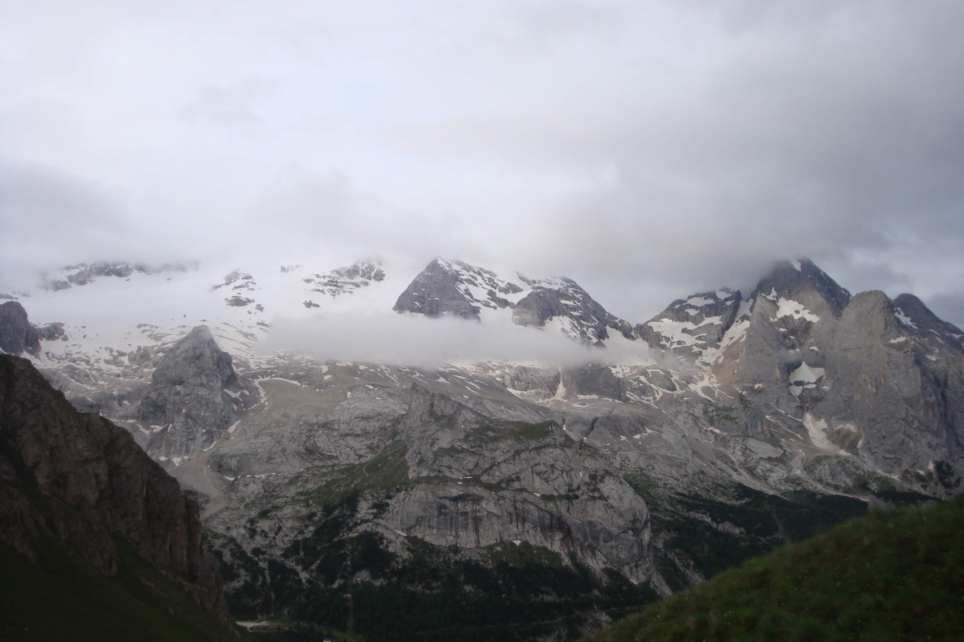 Już samo podejście do początku ferraty dostarczyło nam pięknych widoków na Marmoladę oraz sąsiadujący z nią majestatyczny Gran Vernel. O ile na Gran Vernel prowadzą jedynie drogi wspinaczkowe to na Marmoladę prowadzi ferrata. Jak wygląda wejście na najwyższy szczyt Dolomitów, będziecie mogli przeczytać w następnej relacji.