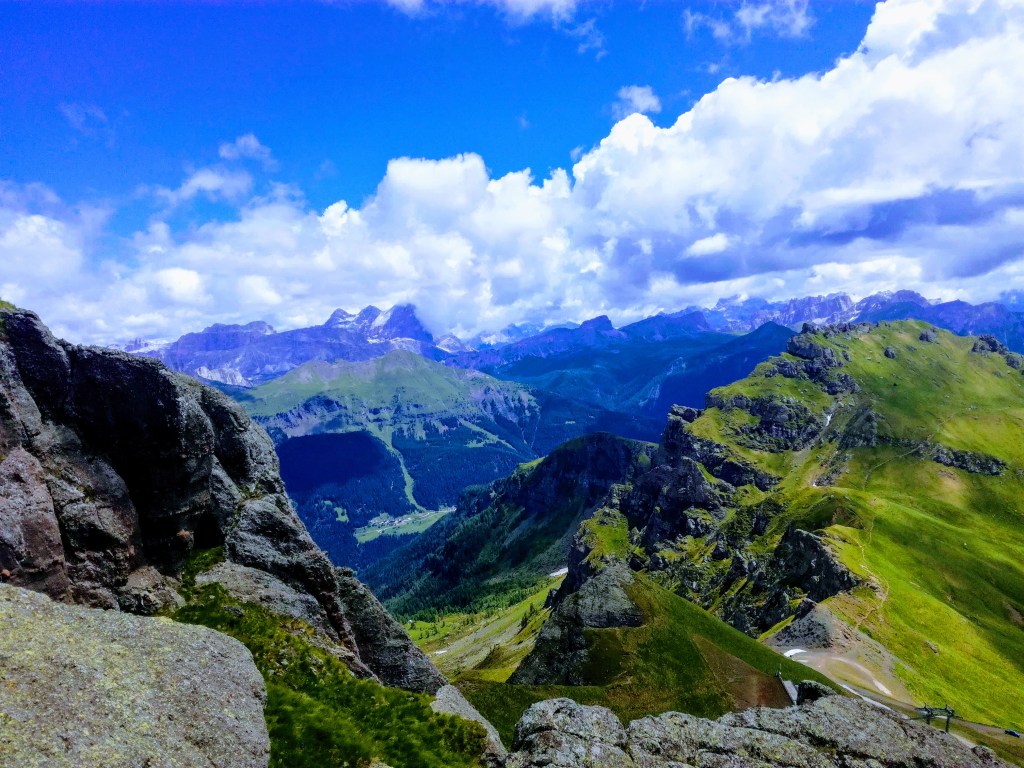 Ferrata Delle Trincee poprowadzona została po grani Padon znajdującej się pomiędzy masywami Marmolady i Sella praktycznie w samym sercu Dolomitów. Dlatego też poza widokami na te dwa masywy możemy cieszyć się zdecydowanie szerszą panoramą.