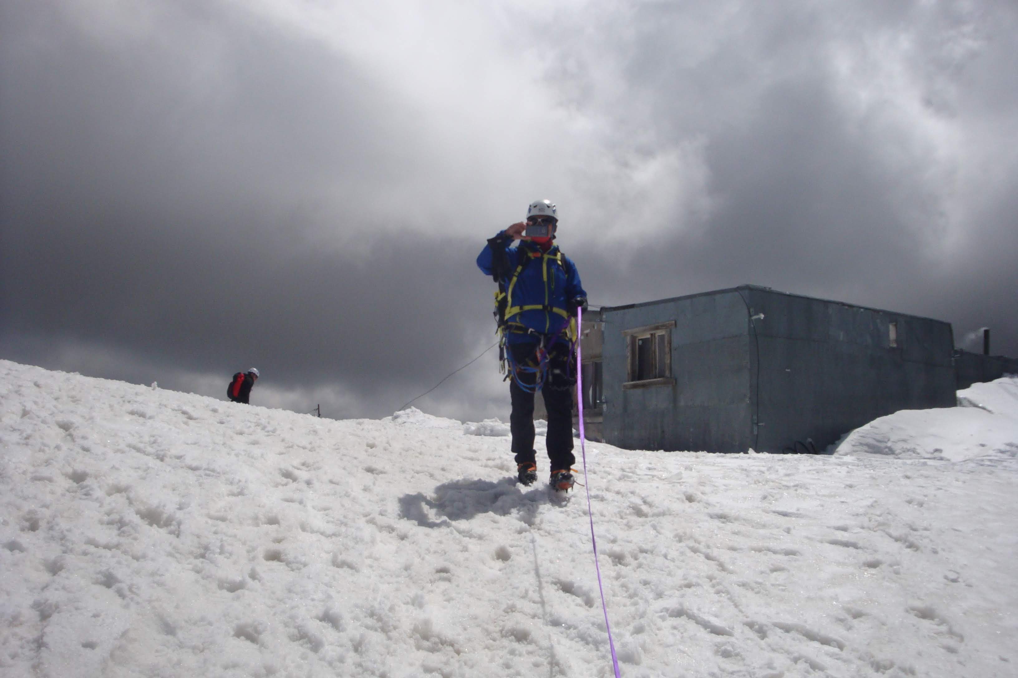 Dochodzimy na śnieżne pole w kopule szczytowej, zakładamy raki i zmierzamy w kierunku szczytu.
