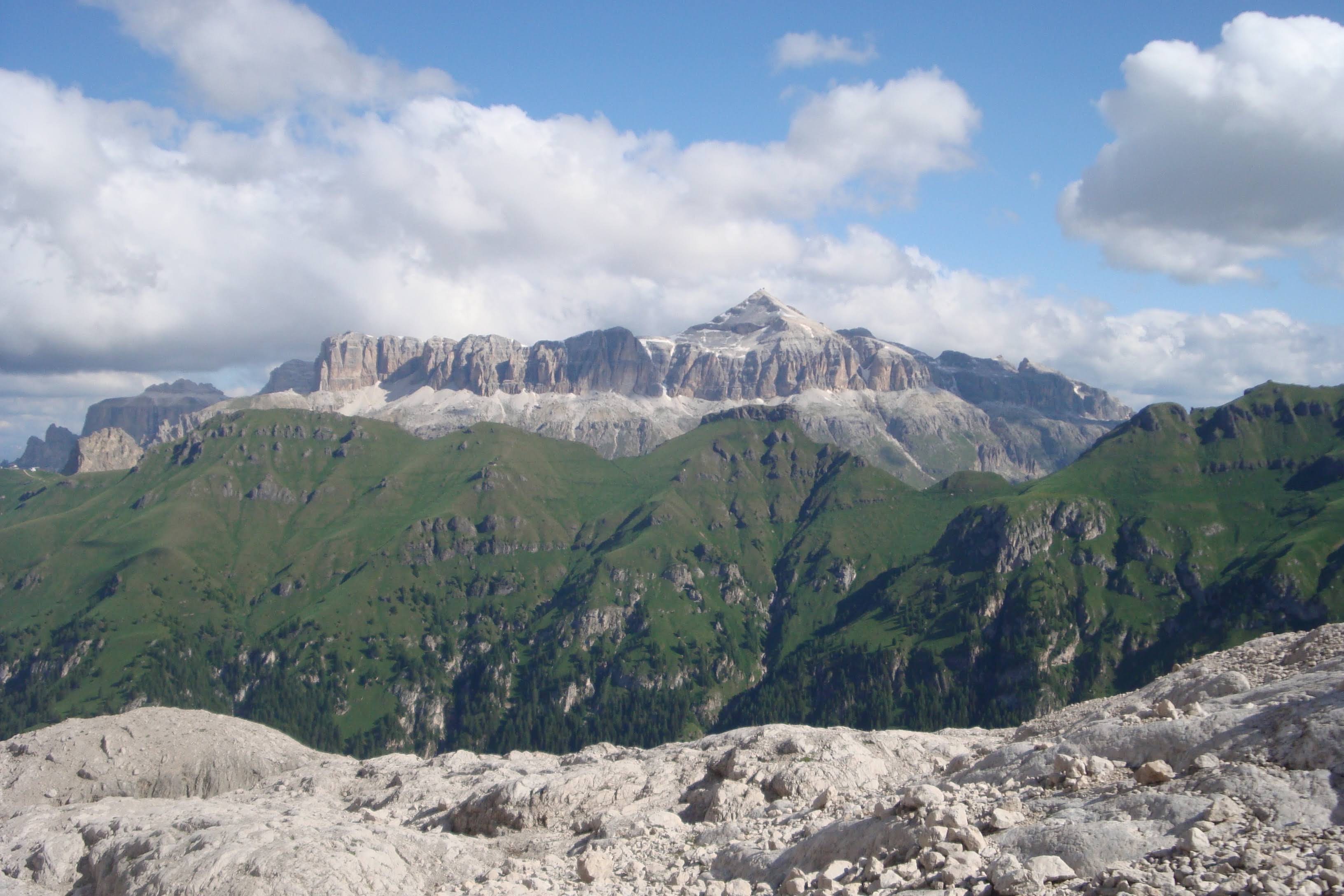 Marmolada – każdy kto tutaj był wymieni przynajmniej dwa powody dla których warto się tutaj się przywlec. Pierwszy to Punta Penia (3343m npm) – najwyższy szczyt Dolomitów i jedyny w tym rejonie górskim lodowiec, drugi – słynne południowe ściany.