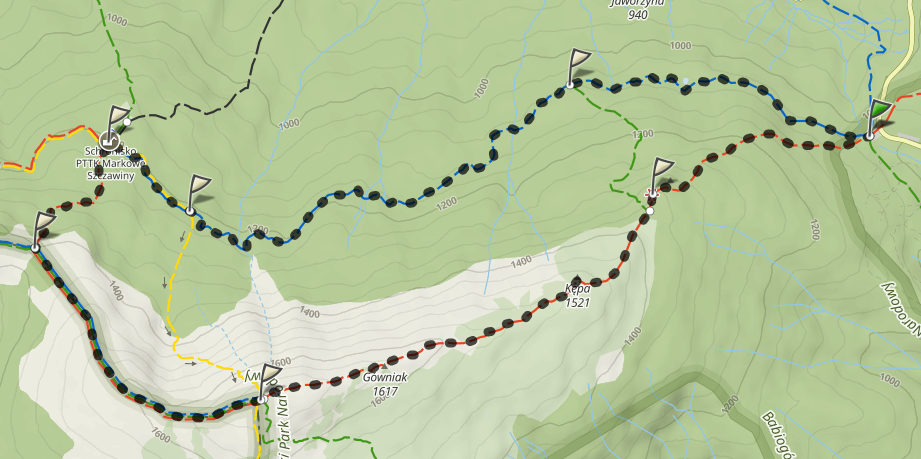 Pierwszy odcinek podejścia – Sokolica, zastanawiam się, jak jest z tą widocznością, czy trafimy z pogodą, czy jednak ta spłatała nam figla. Docieramy na punkt widokowy i … widoków brak.Idziemy dalej mijając Kępę, Gówniak w dalszym ciągu bez jakichkolwiek widoków.