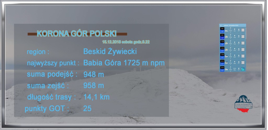 Kolejnym szczytem w mojej Koronie Gór Polski jest Babia Góra, zwana również królową Beskidów oraz matką niepogody, jest jednym z tych szczytów, które warto zdobyć zimą.