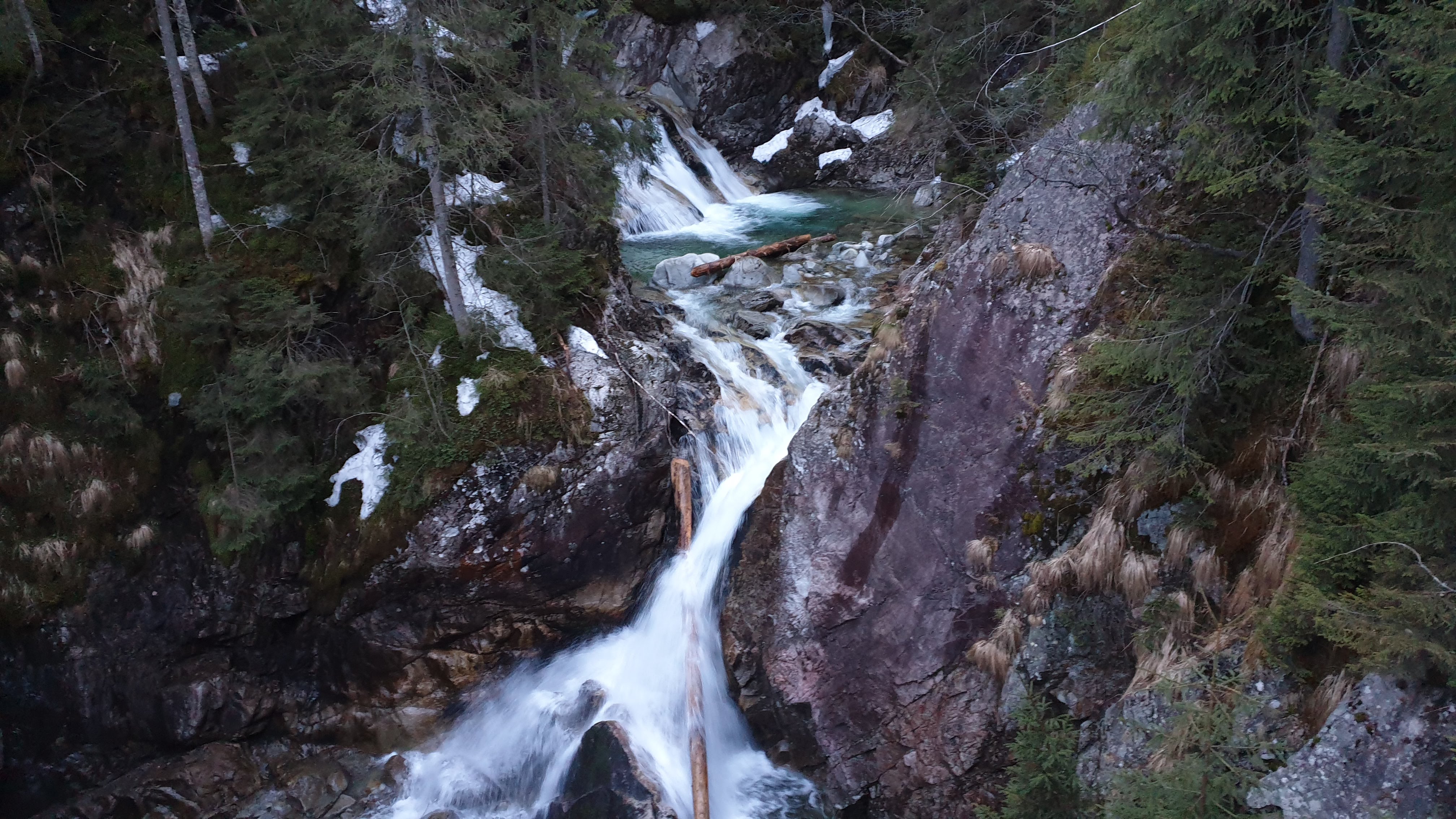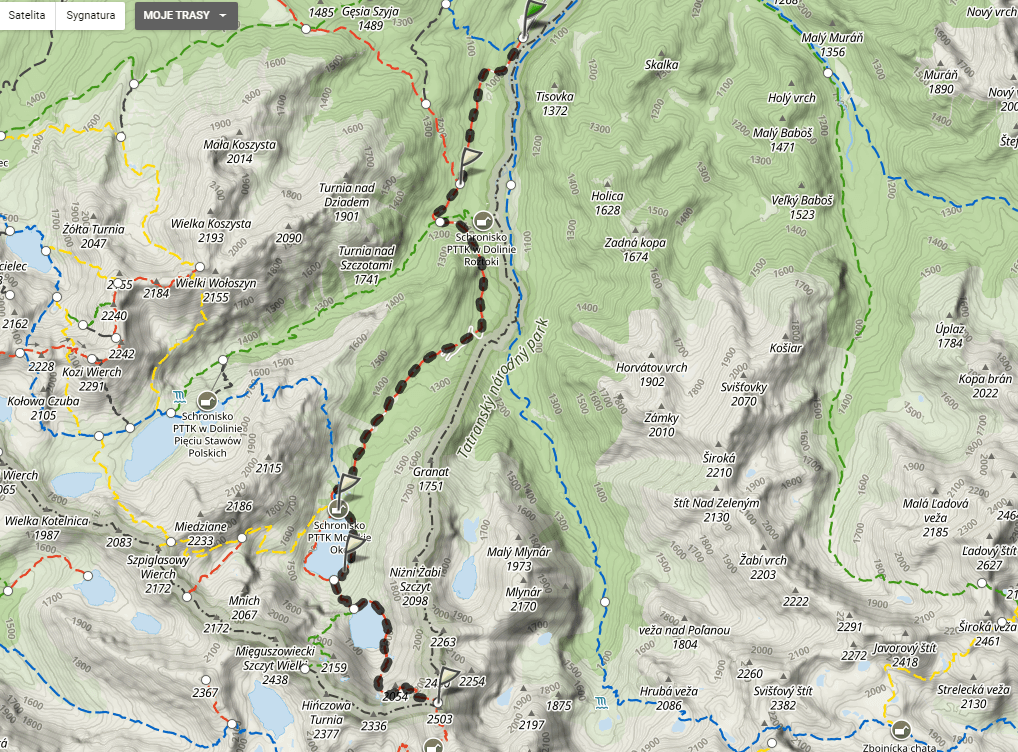 Przeważnie narzekamy na ten odcinek, ale teraz było zdecydowanie lepiej. Droga była niemal pusta, a napotkani ludzie zdecydowanie nie byli przypadkowymi turystami. Prawie każdy miał sprzęt wskazujący, że wraca z bardziej ambitniejszego celu niż sławne schronisko. O ile fajniej idzie się tędy o tej porze, niż popołudniem w szczycie sezonu, gdzie klimat górskiej wycieczki niszczony jest przez płaczące dzieci i podpitych gawędziarzy.