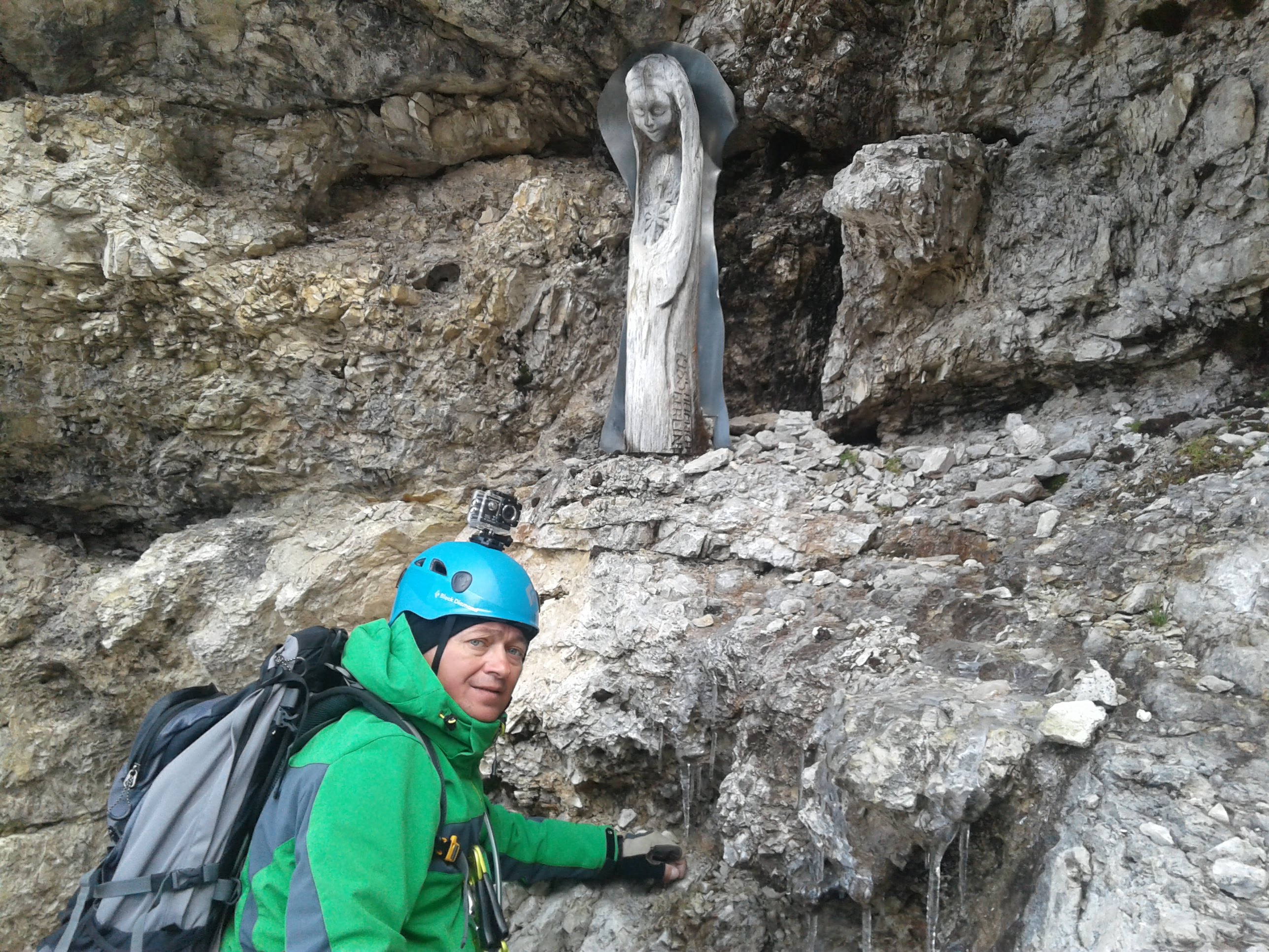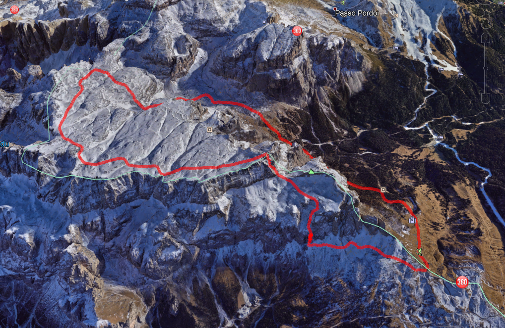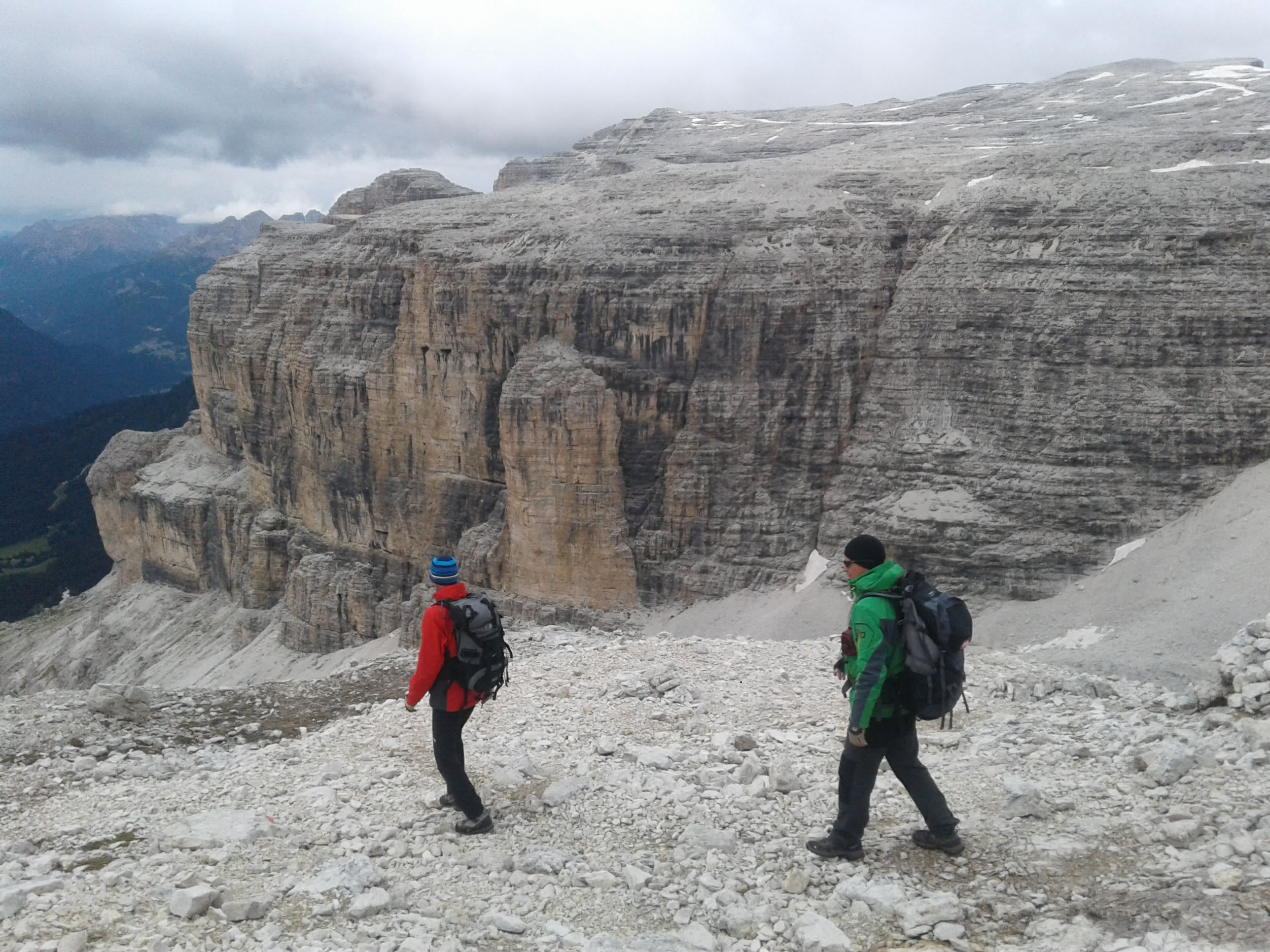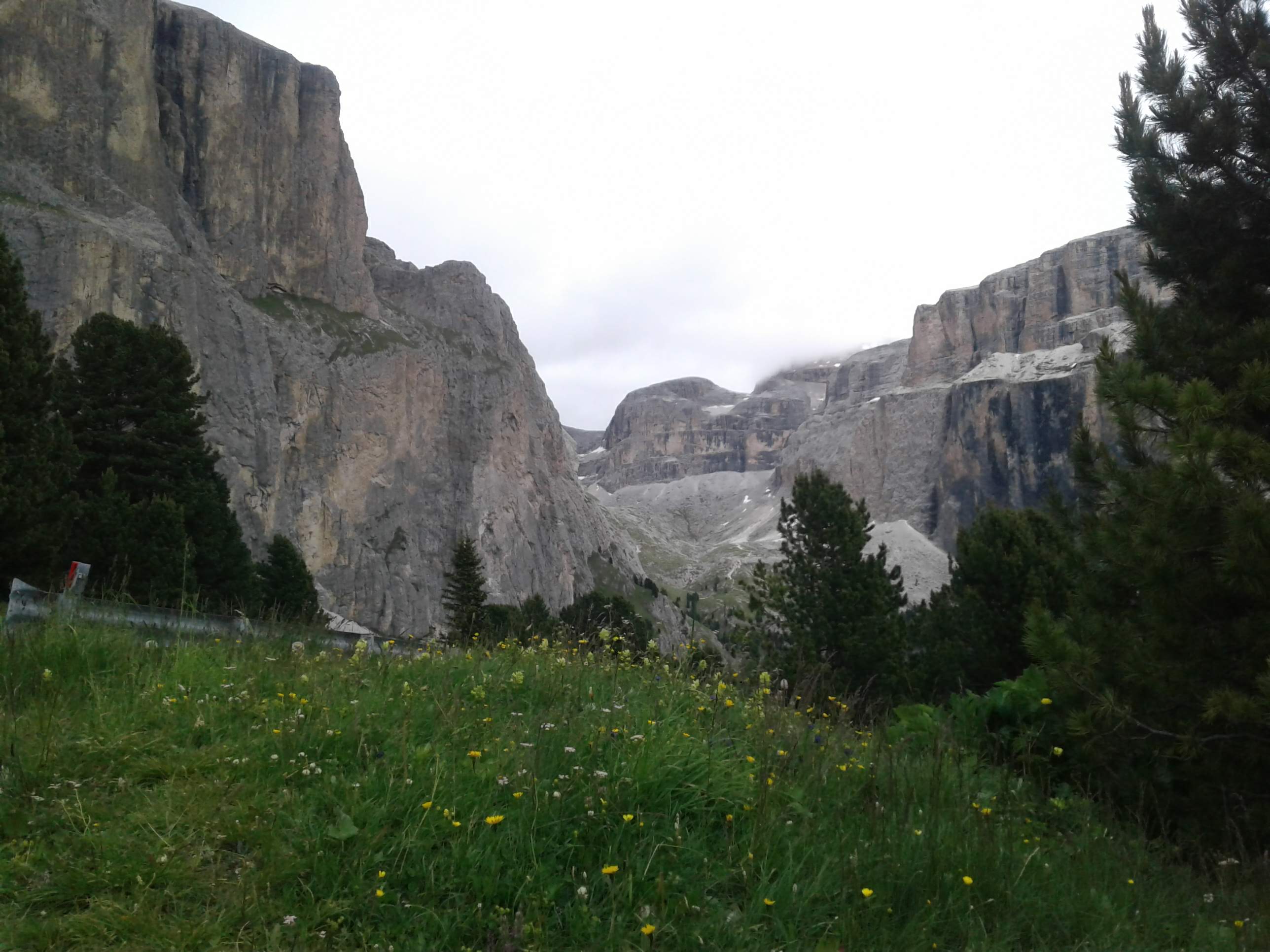 Z Paso Sella kierujemy się wzdłuż północno-zachodnich urwisk grupy. Po około 20 minutach docieramy do początku ferraty. Droga zaczyna się mocnym akcentem – wspinamy się prawie pionowym zacięciem.