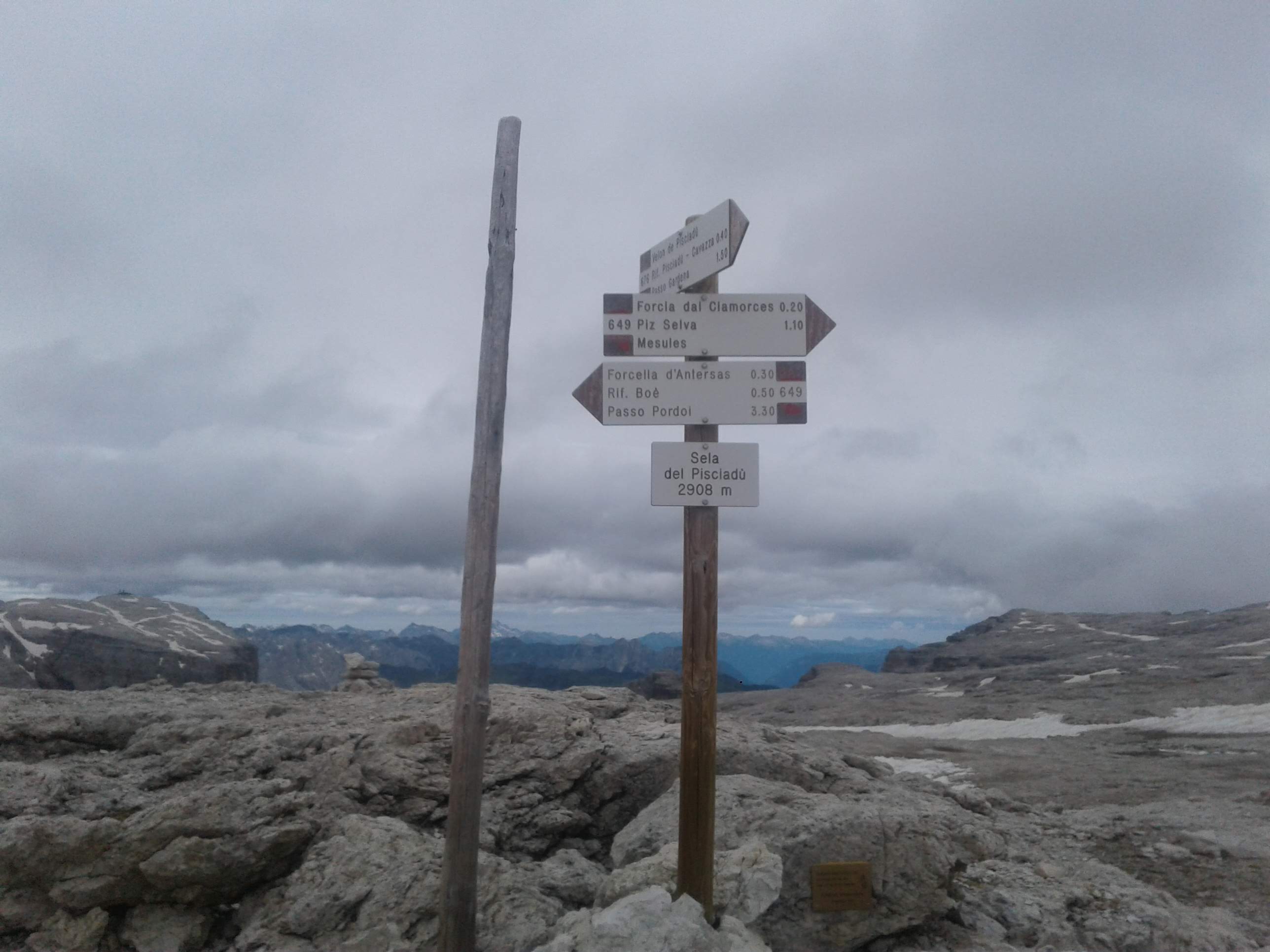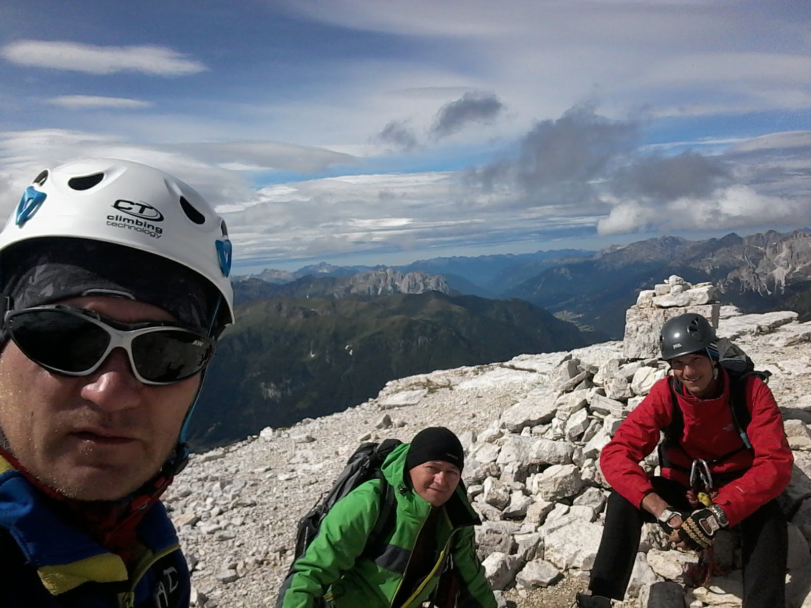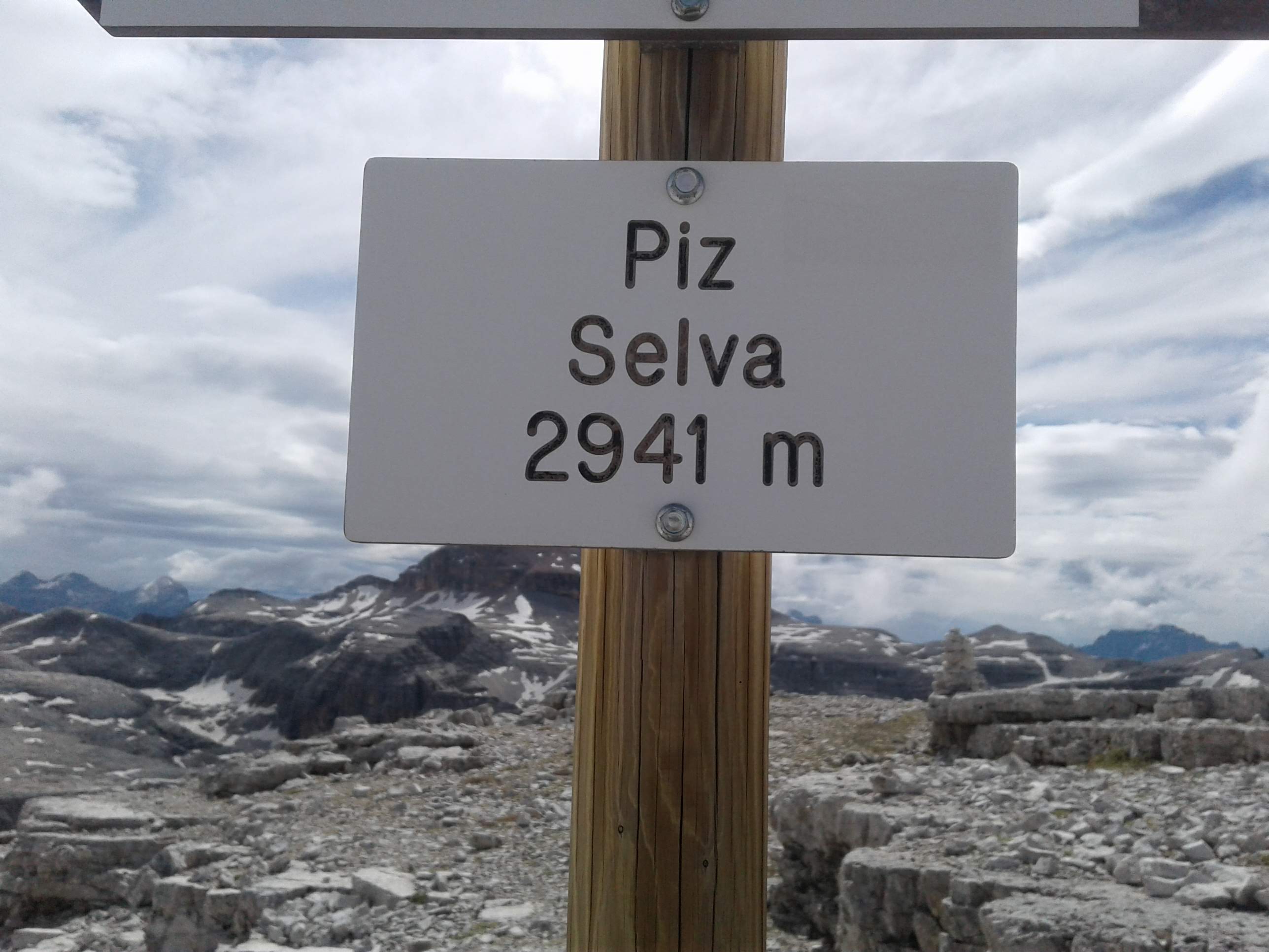 Wychodzimy na grań i nią na szczyt. Na odejściu pod Piz Selva dominują eksponowane nieubezpieczone odcinki. Idziemy wolno, bo każdy błąd może zakończyć się bardzo długim lotem. Osobiście nie chciałbym przechodzić tędy podczas deszczu, gdy skała jest śliska. Wreszcie docieramy na wierzchołek..
