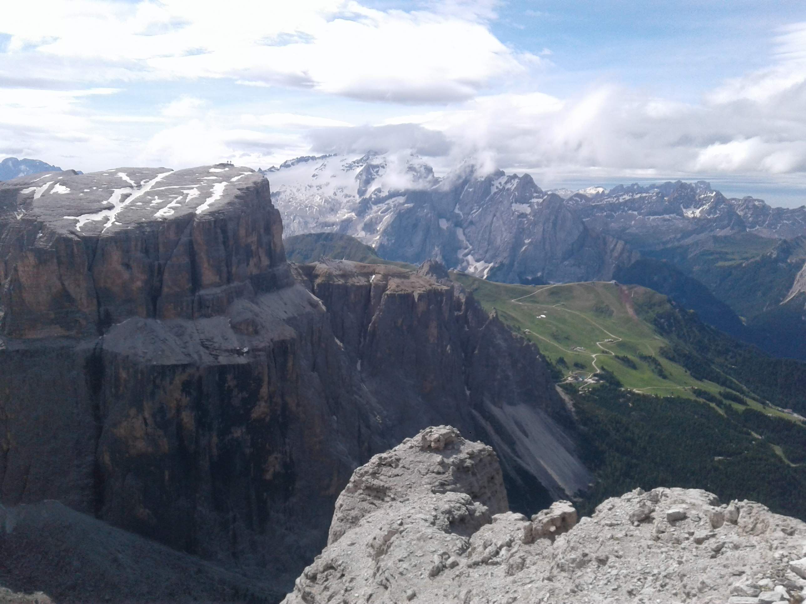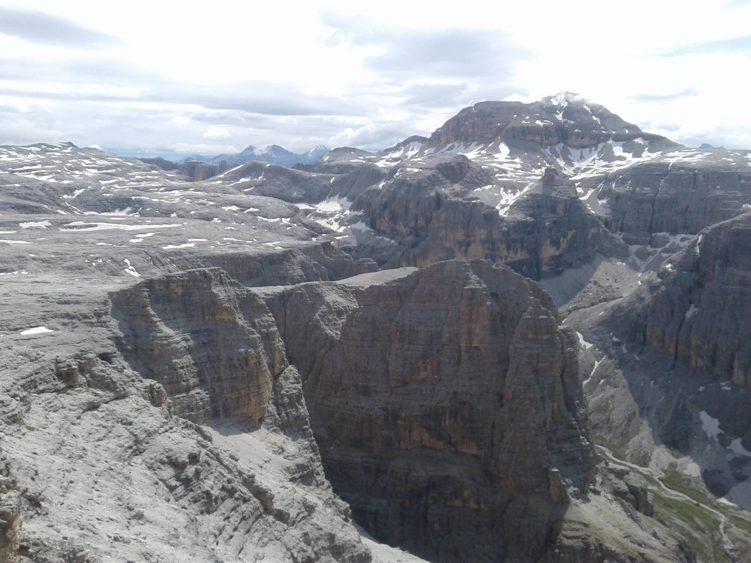 Przed nami roztacza się niezwykle efektowny widok na płaskowyż Selli i Piz Boe (3154m.) – najwyższy szczyt grupy.