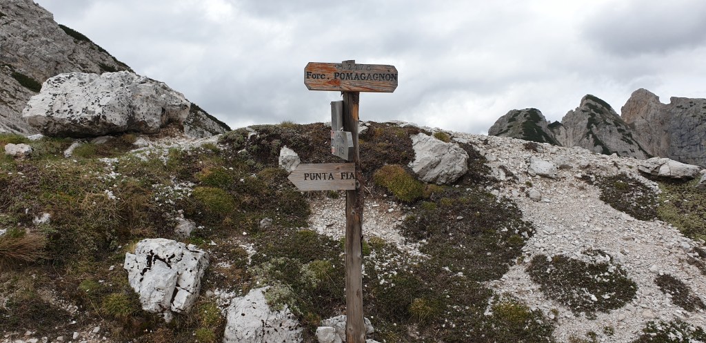 Po paru minutach docieramy na Forcella del Pamagagnon. Prowadzi tędy szlak którym będziemy schodzić w kierunku Cortiny.