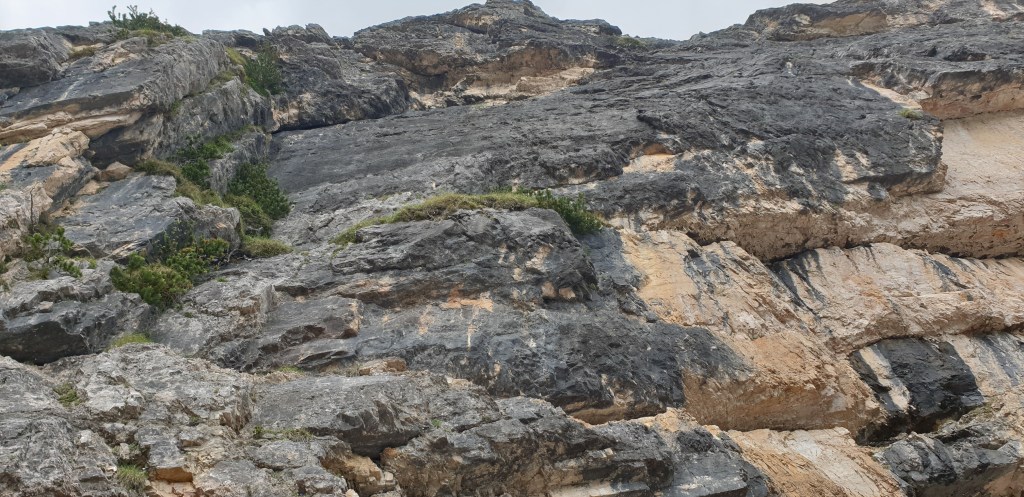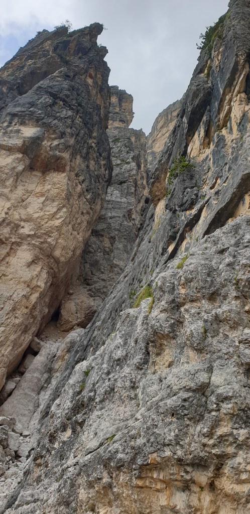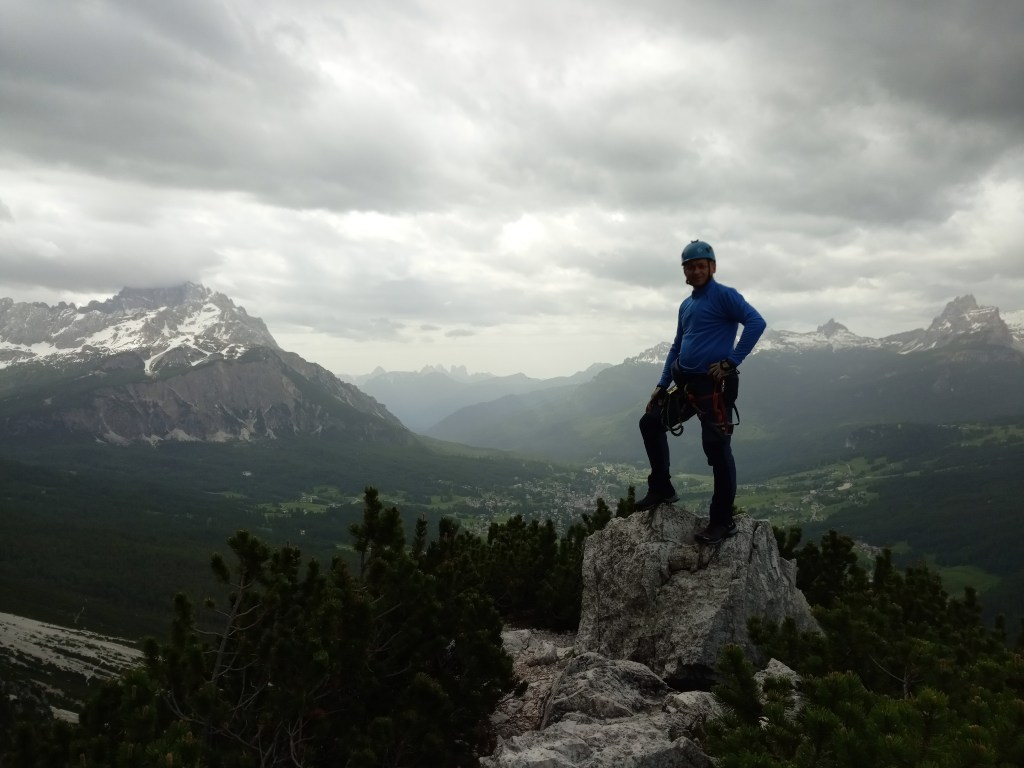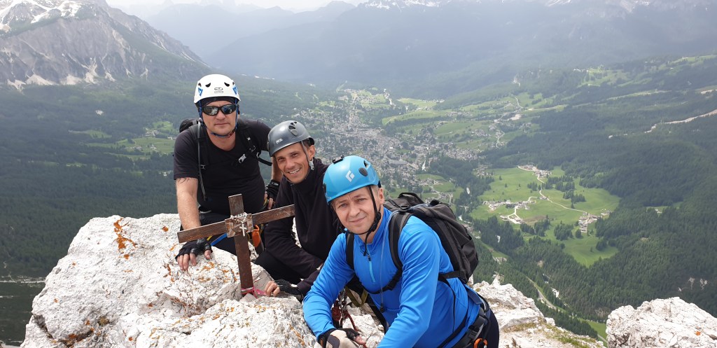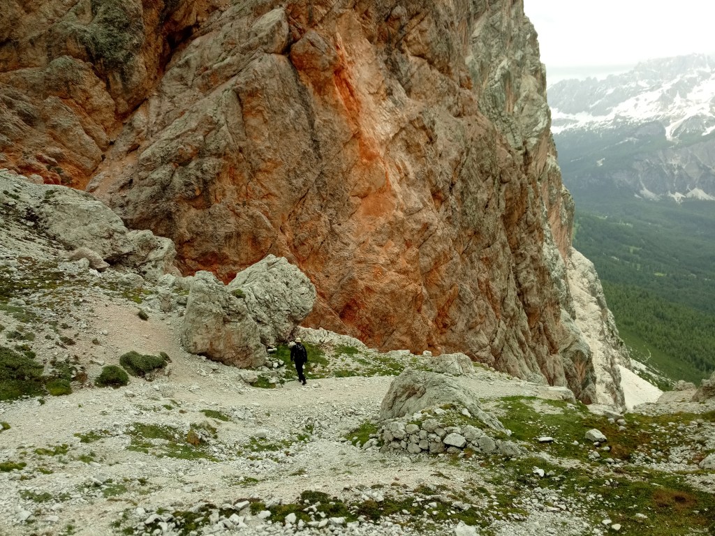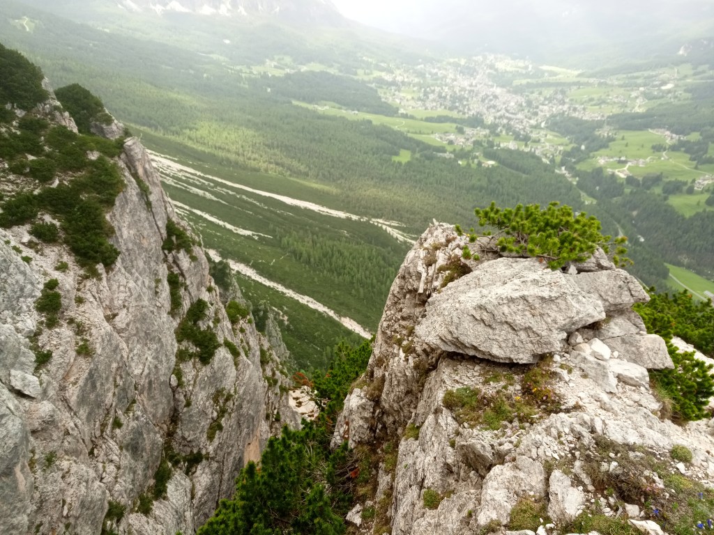 W ten sposób docieramy do najtrudniejszego miejsca na całej drodze wycenianego na C. W miejscu tym znajduje się świetny punkt widokowy na całą Cortinę d’Ampezzo i otaczające je ze wszystkich stron masywy. Wszyscy mamy świetne humory i z werwą ruszamy dalej.