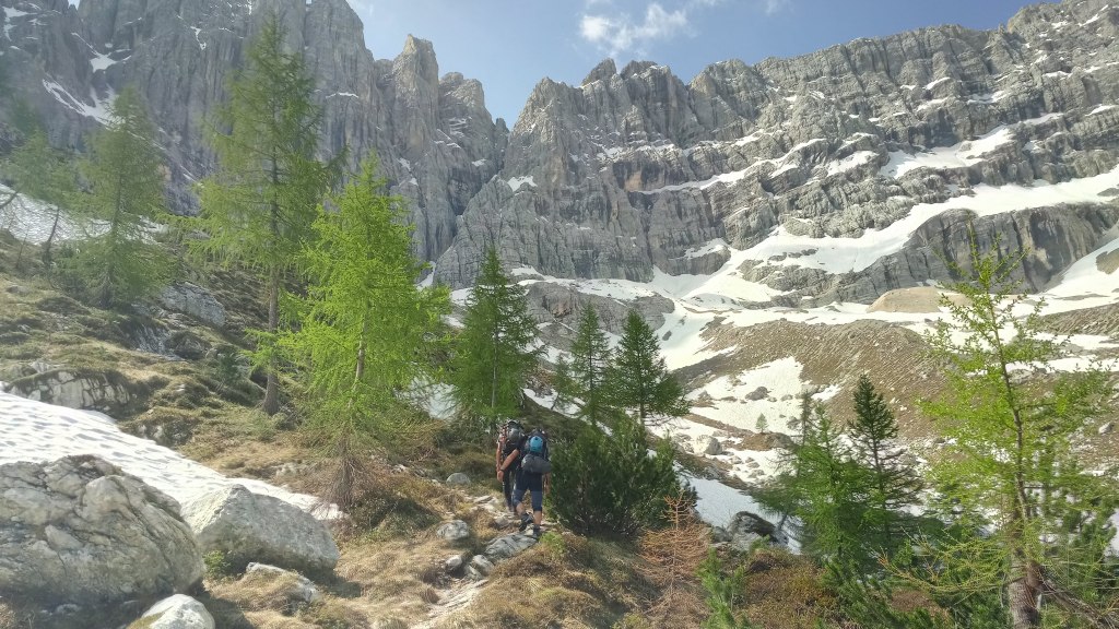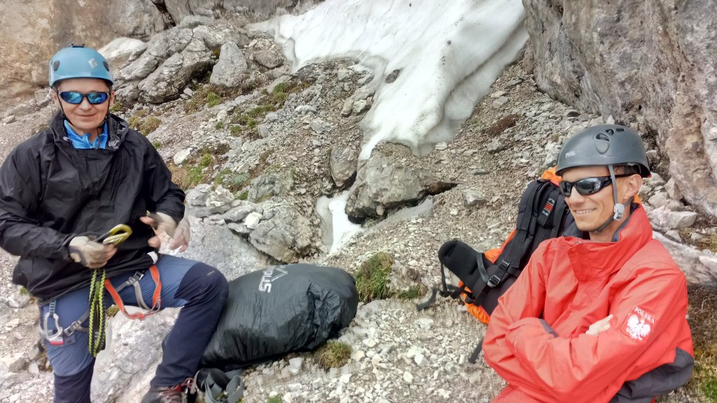 Trudno tą trasę przejść w jeden dzień dlatego rozłożyliśmy ją na dwa etapy z noclegiem w biwaku Slataper.