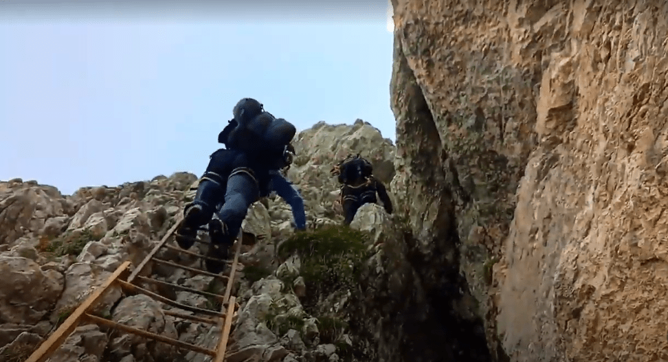 Via ferrata Vandelli zaczyna się eksponowaną wspinaczką wewnątrz kruchego komina. Odcinek ten,