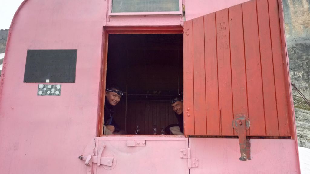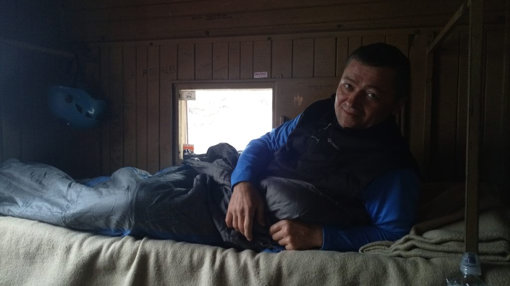 Około 19 docieramy do schronu położonego efektownie na wysuniętej platformie skalnej. Pogoda jakby czekała na nas z ulewnym deszczem, gdy tylko weszliśmy do schronu burza rozszalała się na dobre.