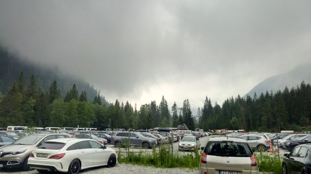 Pod schroniskiem meldujemy się około 15:30, po półtorej godzinie dreptania asfaltową drogą w tłumie innych turystów. 🤦♂️