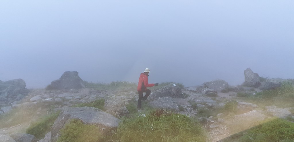 Szczerze mówić, nie mam pojęcia, w którym momencie odbiliśmy za mocno w prawo i okazuje się że wyszliśmy gdzieś pomiędzy Przełęczą pod Rysami a Południowym wierzchołkiem Niżnich Rysów. Dobrze ze widoczność się polepszyła, kierujemy się w lewo trawersujemy zbocze i okazuje się ze wychodzimy na przełęczy między południowym a głównym wierzchołkiem. Teraz tylko kawałek w górę i jesteśmy na szczycie.