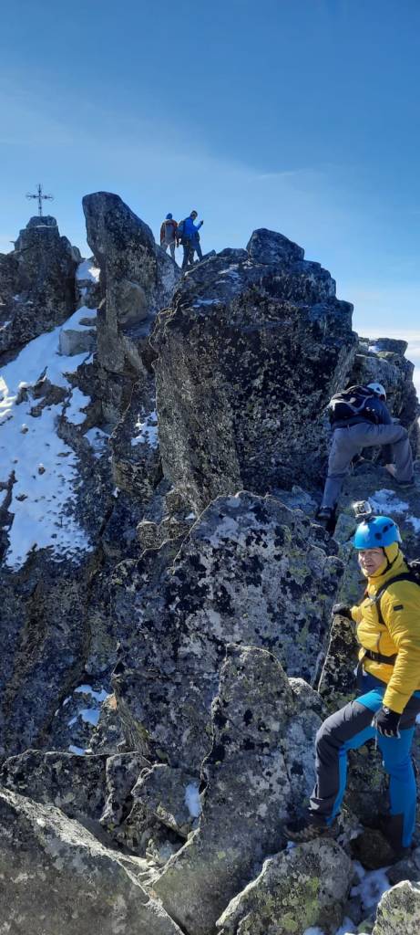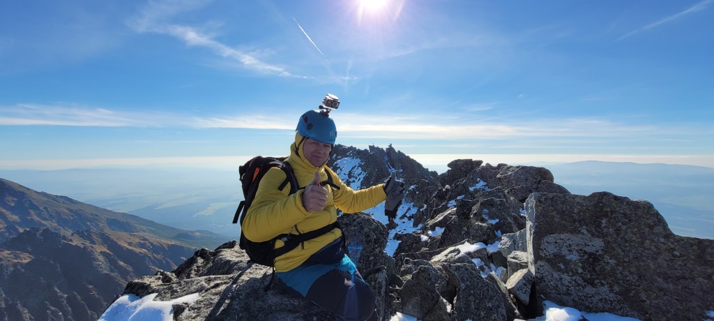 Wchodzimy na grań nie jest tak źle jak myślałem, idzie się dobrze trzeba tylko uważnie stąpać po zaśnieżonych miejscach, od czsu do czasu zrywać oblodzenia. Takim to sposobem o godzinie 10.45 staję na najwyższym szczycie Karpat, Tatr oraz Słowacji. Trzeci szczyt do Wielkiej Korony Tatr, oraz czwarty do Korony Europy zdobyty.