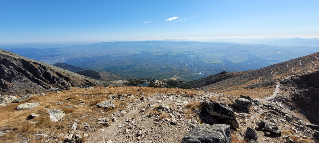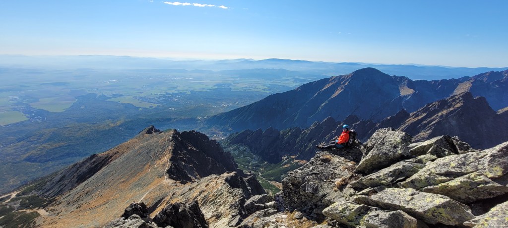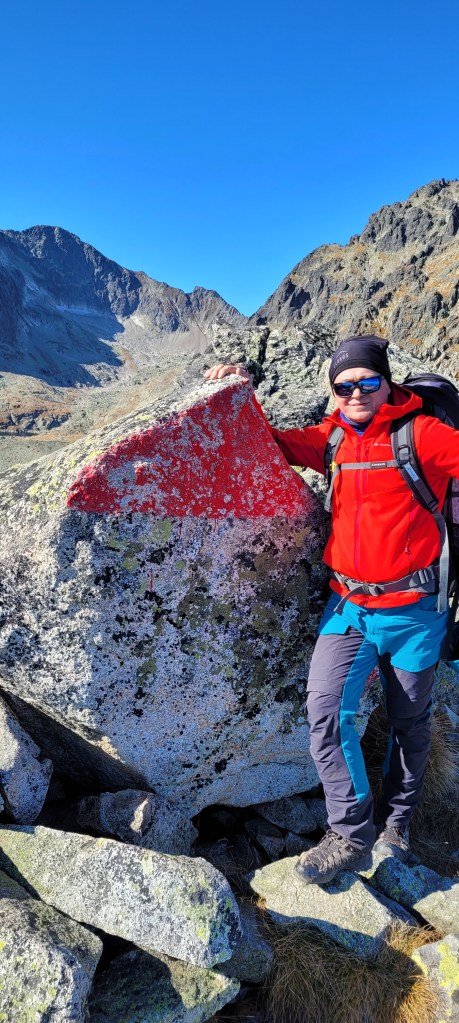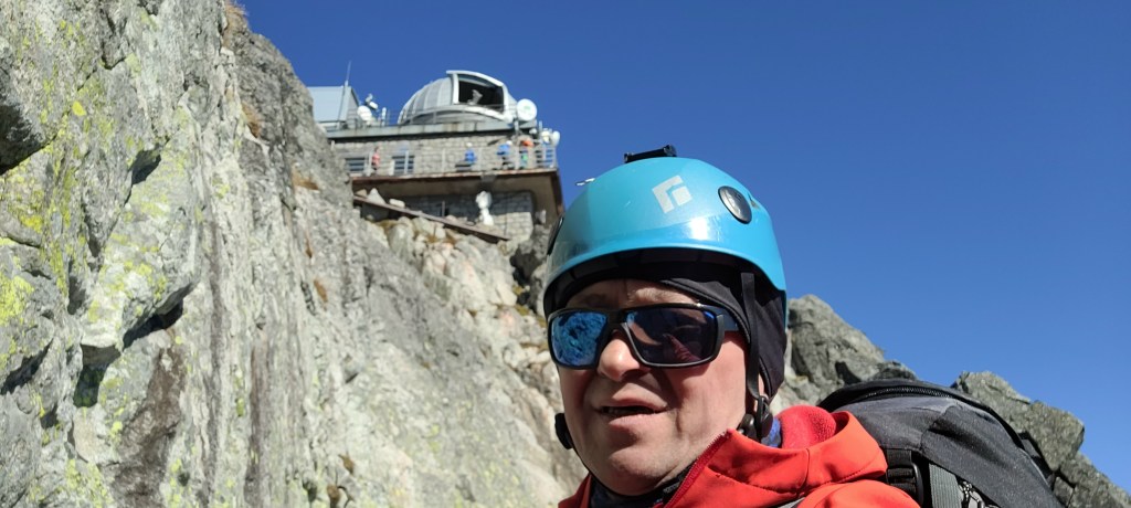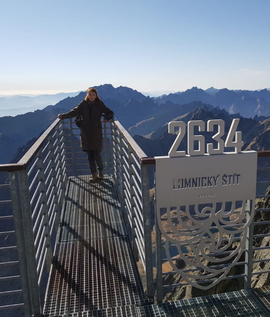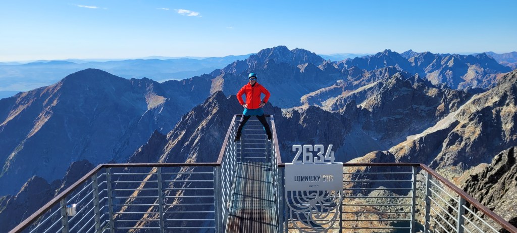 Lomnický štít – 2 632 m n.p.m., drugi po Gerlachovským štíte pod względem wysokości w Tatrach, spogląda dumnie na okoliczne szczyty i doliny. Codziennie turyści wjeżdżając kolejką, stają na jego wierzchołku aby podziwiać wspaniałą panoramę. Stanęliśmy i my – ja po niecałych dwóch godzinach wędrówki i nietrudnej wspinaczki od Przełęczy Łomnickiej drogą klasyczną, Marysia czerwoną gondolą w 8,5 minuty 😀.