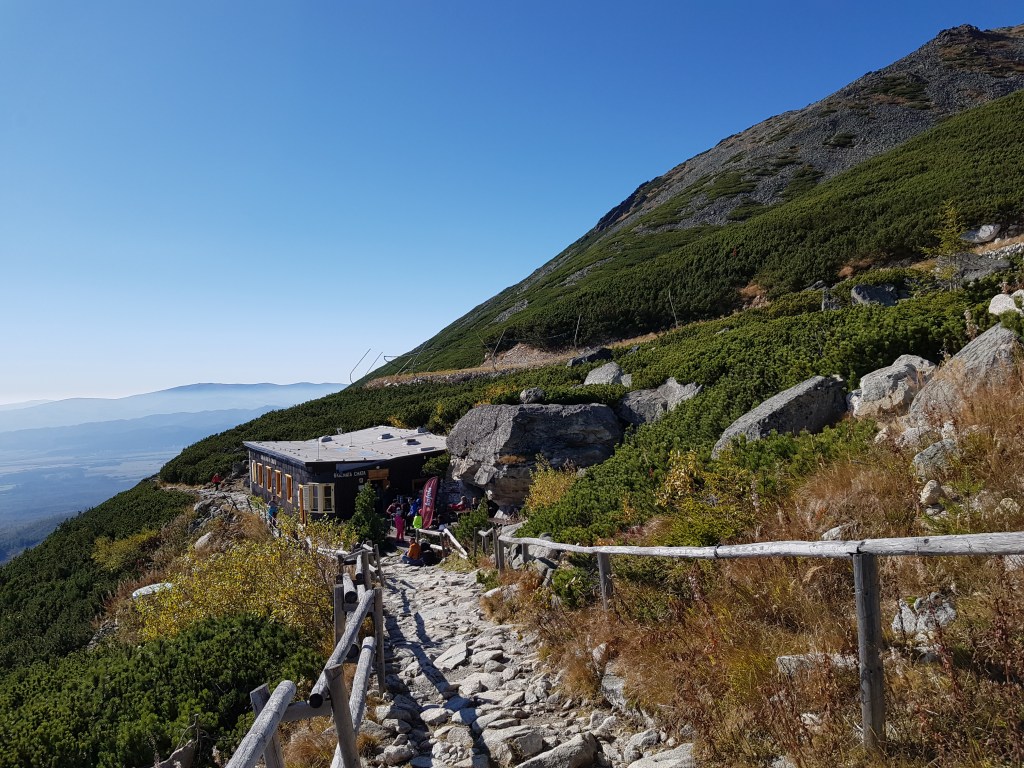 Marysia zostaje jeszcze na dole w oczekiwaniu na swoją kolej wjazdu odwiedzając w tym czasie Schronisko Łomnickie (Skalnatá Chata). Tuż przy wejściu do schroniska przebiega jeden z najpopularniejszych szlaków słowackich: Tatrzańska Magistrala. Z okien jadalni rozpościera się urokliwy widok na część Słowacji wraz z jej podtatrzańskimi miejscowościami.