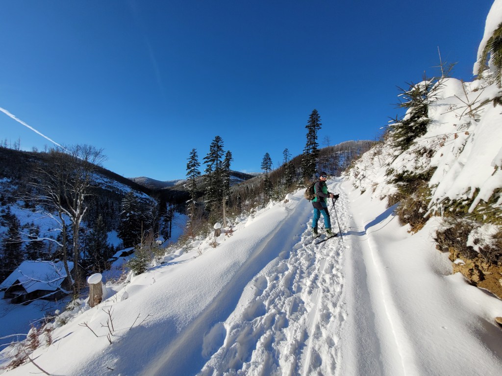 Wyprawę rozpoczynamy we wsi Rycerka Górna, z parkingu przed leśniczówką „Pod Raczą”. Najlepiej dojechać tu samochodem i zostawić go na specjalnie przygotowanym parkingu, jest tutaj wiata, miejsce na ognisko i małe pole biwakowe. Parking jest, jednak w praktyce okazało się że zasypany śniegiem a chętni na wjazd muszą sami sobie odśnieżyć miejsce. W poszukiwaniu dogodnego miejsca postojowego wpadamy w zaspę i tak zostajemy pozbawieni jakiegokolwiek ruchu. Po nieudanej próbie wyciągnięcia nas z zaspy innym samochodem udajemy się do wsi w poszukiwaniu ciągnika. Ekspedycja ratunkowa odnosi sukces znajdujemy ciągnik z sympatycznym kierowcą. Wydostajemy nasz pojazd na twardy grunt i z godzinnym poślizgiem o 9.00 ruszamy na szlak.