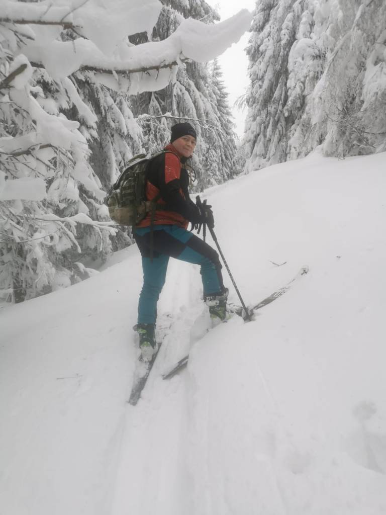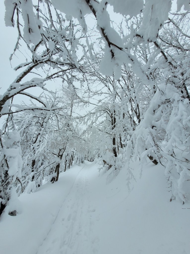 Szlak czerwony odbija w lewo my nadal trzymamy się drogi granicznej która prowadzi nas na szczyty Bugaj (1140 m), Jaworzyna (1173 m) oraz Kikula (1119 m). Zjeżdżamy na Przełęcz pod Banią (1030 m) w tym miejscu opuszczamy grań i schodzimy ścieżką na Przełęcz Przegibek (990 m).