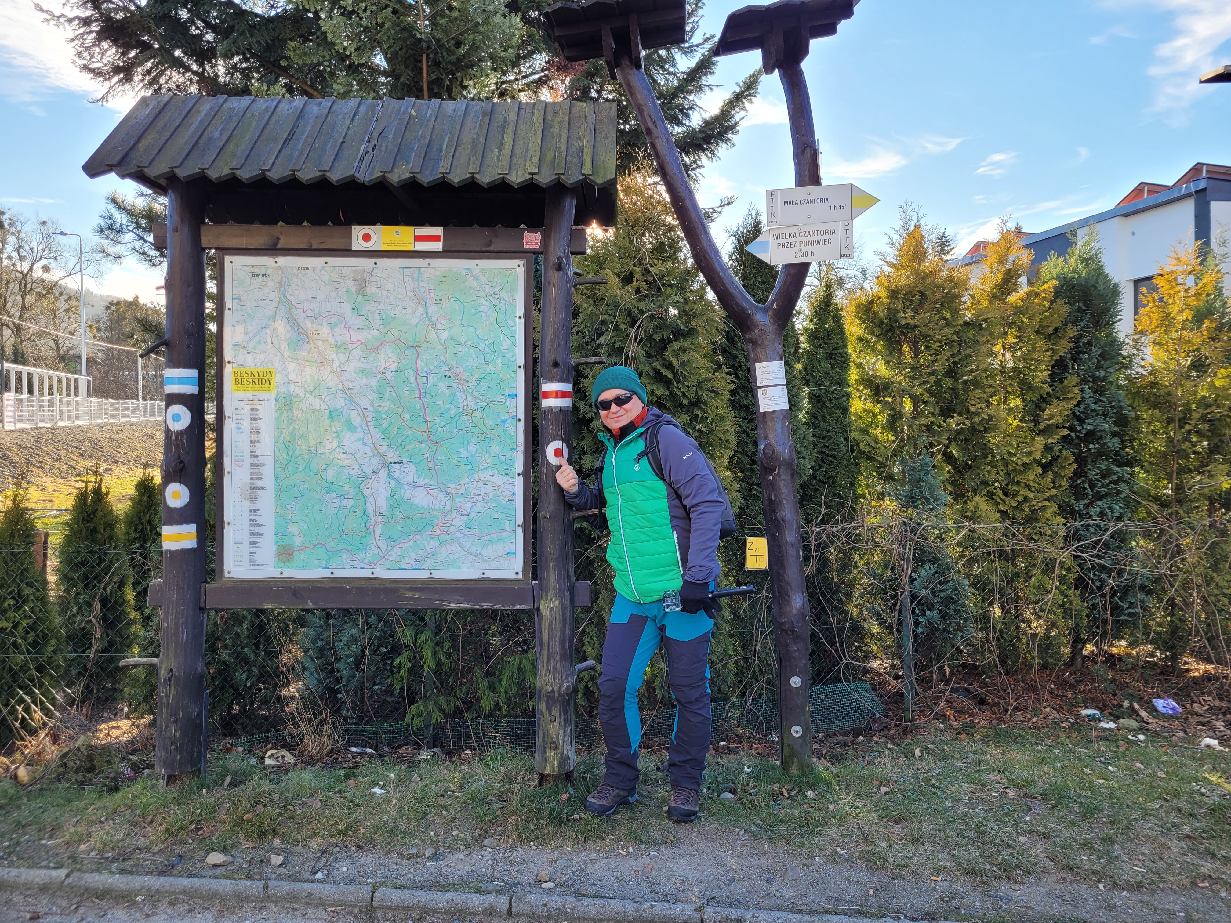 Sielanka nie trwa jednak długo, gdyż wkrótce trasa staje się kamienista i coraz bardziej stroma a na domiar złego oblodzona. Postanawiamy założyć raczki i jakie jest nasze zdziwienie kiedy okazuje się że zostały w domu 😱. Po krótkiej naradzie postanawiamy że Marysia wróci do Ustronia a ja pójdę dalej. Omijam zalodzoną ścieżkę idąc lewą stroną przez krzaki do miejsca gdzie kończy się lodowisko.