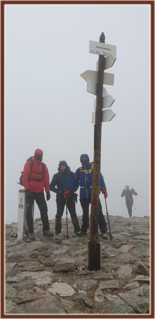 Po śniadaniu ruszamy w kierunku Przełęczy pod Kopą Kondracką 1863 m. Roztacza się stąd przepiękny widok zarówno na Tatry Zachodnie, jak i Wysokie, pośród których w oczy rzuca się przede wszystkim Świnica. Niestety dzisiaj nie doświadczyliśmy takich widoków. Przełęcz pod Kopą Kondracką jest znana od dawna. Wiódł nią na słowacką stronę do Doliny Cichej znakowany szlak turystyczny. Przed I wojną światową znajdował się tu schron turystyczny. Wiódł tędy historyczny szlak z Podhala na Liptów. Podczas II wojny światowej tędy przechodzili tatrzańscy kurierzy. Obecnie szlak na południe został zamknięty – po słowackiej stronie jest ścisły rezerwat.